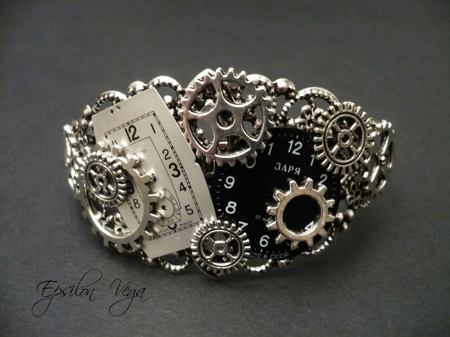 Bracelet tendance steampunk avec cadrans anciens de montre.