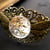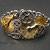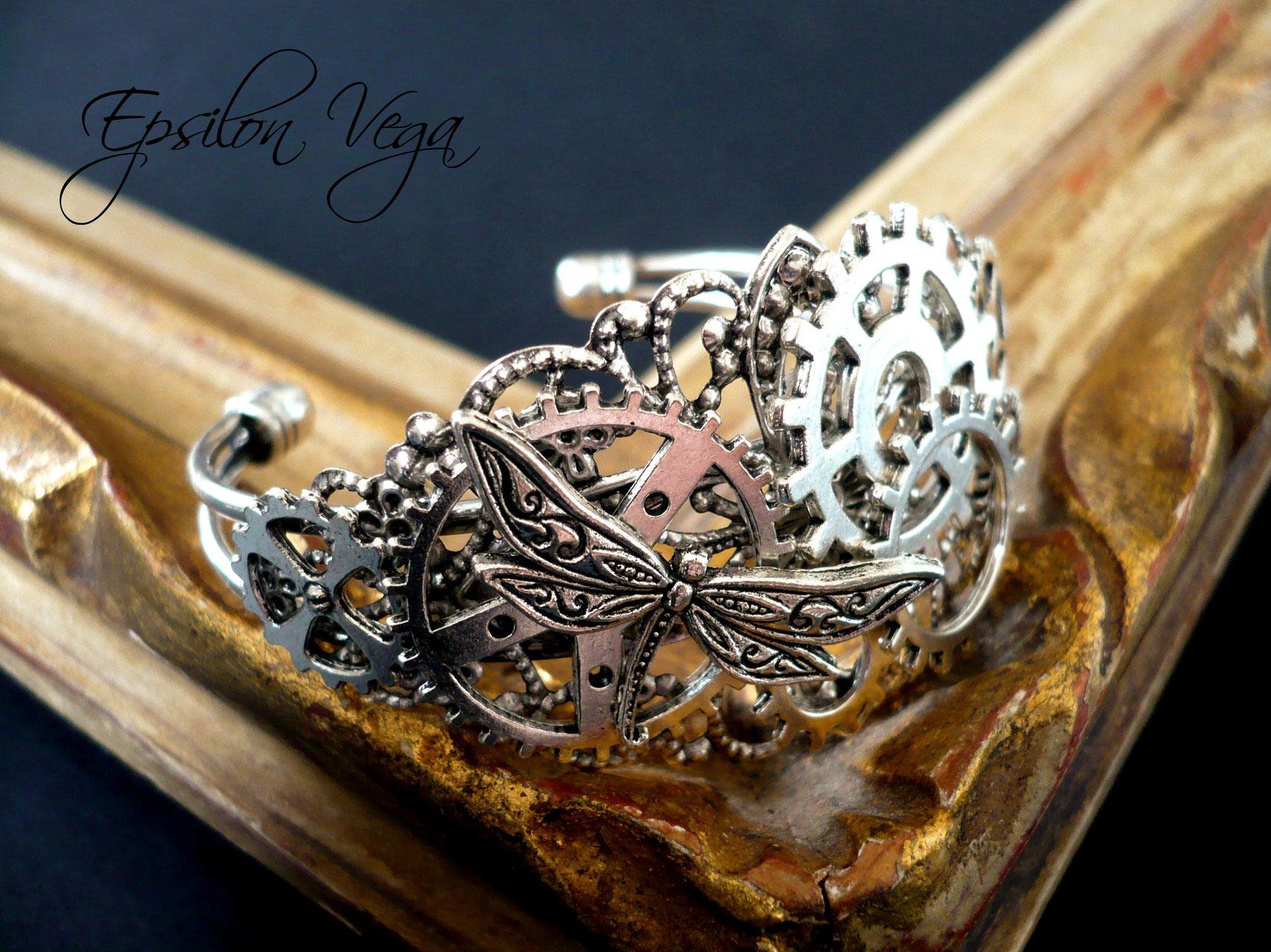 Bracelet tendance steampunk avec mouvement de montre ancienne et ailes de libellule.